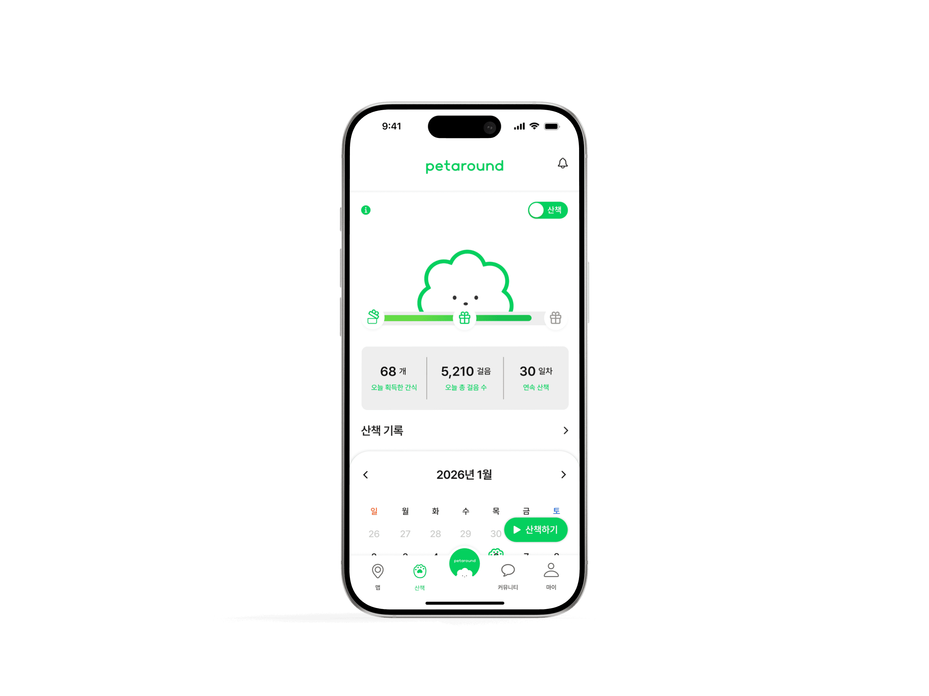 산책 만보기로 간식을 획득해 보세요!